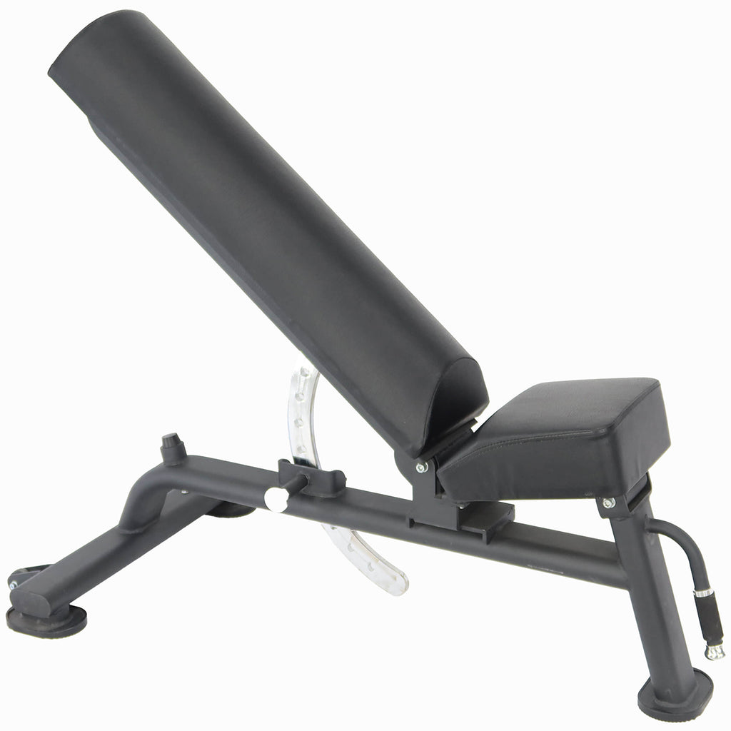 A versatile and innovative adjustable bench featuring a custom-designed benching platform with a half-round mat for enhanced comfort and support. The unique design includes a 4.5-inch rise in the pad, allowing for a deeper stretch and improved range of motion during performance. Built with durability in mind, the bench is constructed from high-quality materials and offers multiple adjustable angles to suit various exercises. Equipped with built-in wheels, it ensures easy mobility and convenient storage. Perfect for strength training, bodybuilding, and functional fitness, this bench combines functionality and thoughtful design to elevate your workout experience.